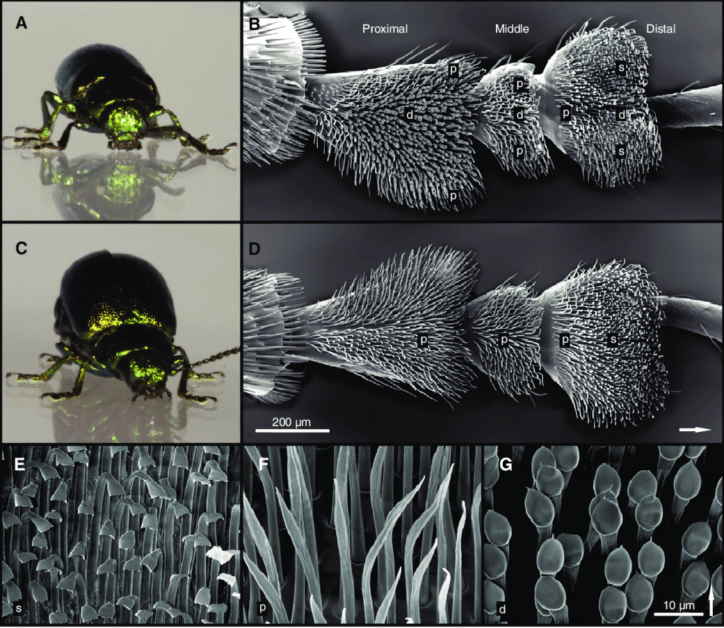 - Lopatkovité (spatulate) setae – širší terminální část, větší kontaktní plocha.