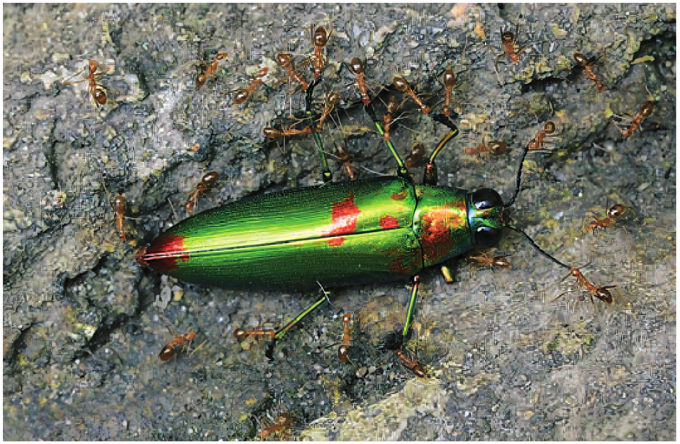 - Kamufláž – barva a vzory pomáhají broukům splynout s prostředím nebo mást predátory.