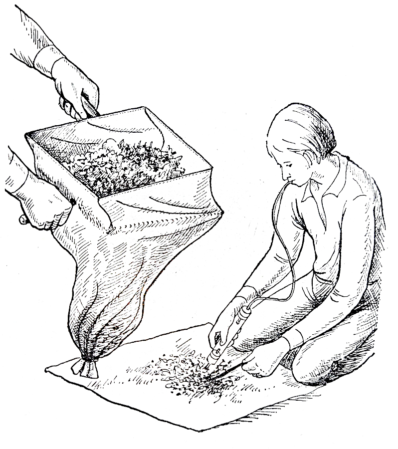 Při prosevu postupujeme tak, že pomocí lopatky nebo rukou s rukavicí vhazujeme prosívaný materiál mezi oba rámy tak, aby byl prostor zaplněn asi z poloviny. Poté pomocí spodní rukojeti prosíváme materiál kruhovými pohyby tak, aby se na sítku točil. Občas je vhodné materiál pootočit i v druhé rovině, tj. nadhozením podobně, jako bychom chtěli na pánvičce otočit omeletu. Když je materiál dostatečně proset, přiložíme oba rámy k sobě a vyhodíme přebytečný materiál. Když je spodní část prosívadla dostatečně plná, přesypeme materiál do připravených sáčků. Pokud budeme prosetý materiál zpracovávat v krátké době, vystačíme si s plastovými sáčky. Při ukládání prosevů pro pozdější zpracování však použijeme raději plátěné sáčky, abychom minimalizovali nebezpečí rozšíření plísní. Zpracování prosevu však neodkládáme příliš dlouho (ne déle než 24 hodin). Metodu prosevu můžeme používat po celý rok.