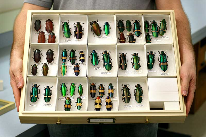 Mnoho muzeí a univerzit umožňuje studium nebo zapůjčení materiálu (zejména pro výzkumné účely). V některých případech je možné získat duplikáty z determinovaných sbírek, které jsou uvolněny pro výměnu. Je tak vhodné navázat odborný kontakt s příslušným kurátorem entomologické sbírky. - Spolupráce s terénními entomology