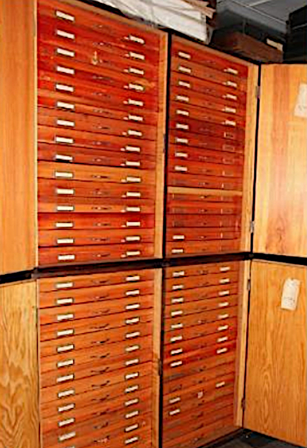Vnitřní prostor je obvykle jednolitý, pro volné rozložení preparátů podle systematiky. V některých případech jsou uvnitř nízké oddělovací pásky pro přehledné rozdělení čeledí nebo rodů. Krabice bývají číslovány a popisovány na čelní straně nebo víku. - Označení a doplňky
