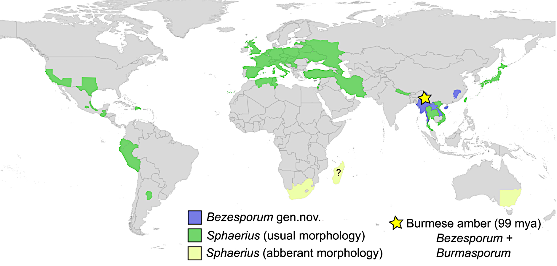 Distribution of records of the genera Sphaerius and Bezesporum