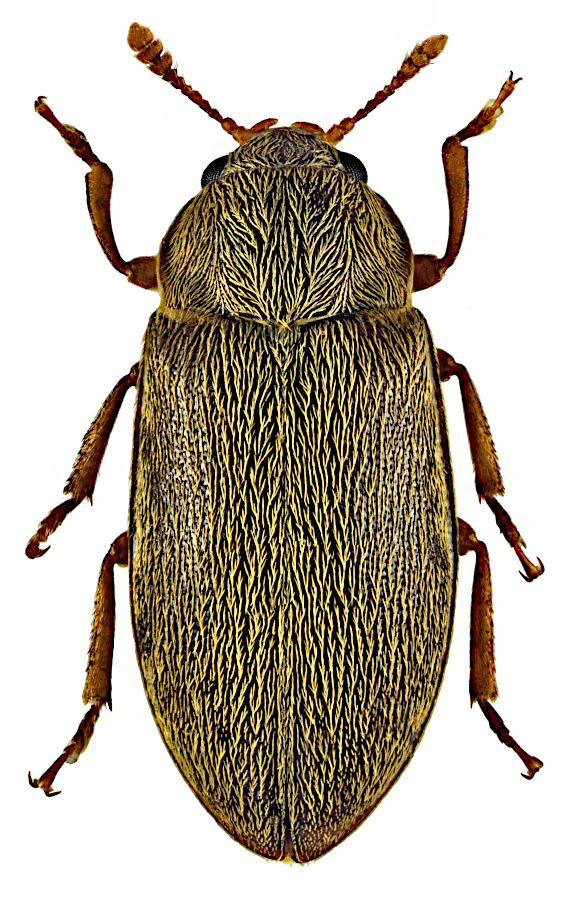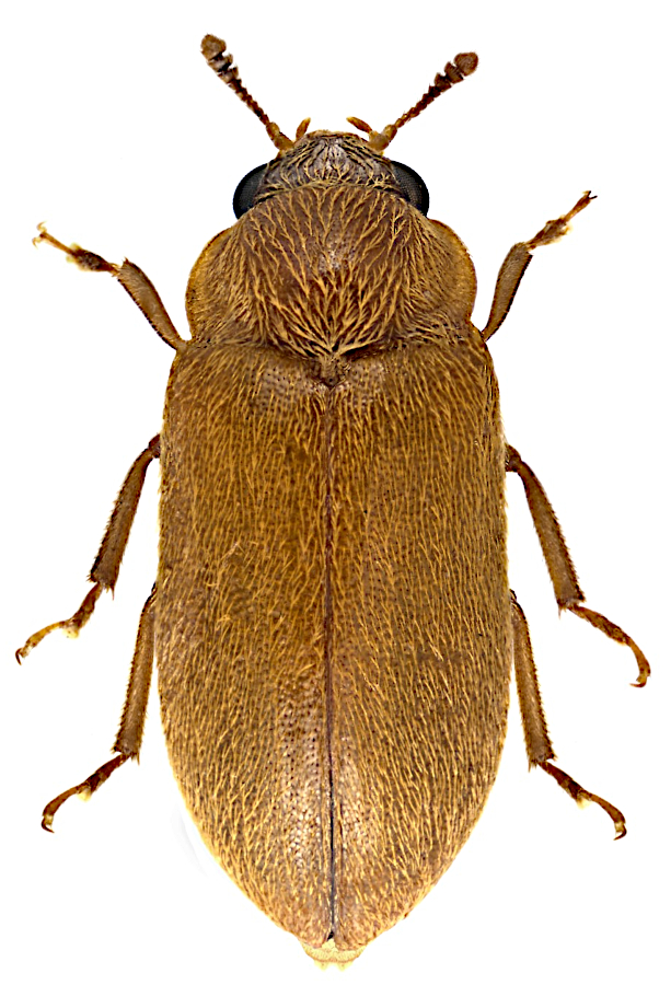 The family Byturidae belongs to the order Coleoptera and comprises small to medium-sized beetles, distributed mainly in the temperate zone of the northern hemisphere. Members of this family are usually 3–6 mm long, have an oval to elongated ovoid body and conspicuously dense hair on both the elytra and the scutellum, which gives them a matt appearance. Their colouration is generally brown to dark brown. These beetles are found primarily on the flowers and fruits of plants in the genus Rubus, where they feed on pollen and other plant tissues. The larvae develop inside the fruits, particularly raspberries and blackberries, and therefore some species are significant as agricultural pests. The best-known species is Byturus tomentosus, whose larvae damage developing raspberry fruits. From a morphological point of view, Byturidae are characterised, among other things, by five-segmented feet, serrated antennae and a relatively short, broad scutellum. Within the superfamily Cleroidea, they represent a small but ecologically well-defined group of beetles, closely associated with flowering shrubs.