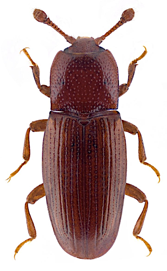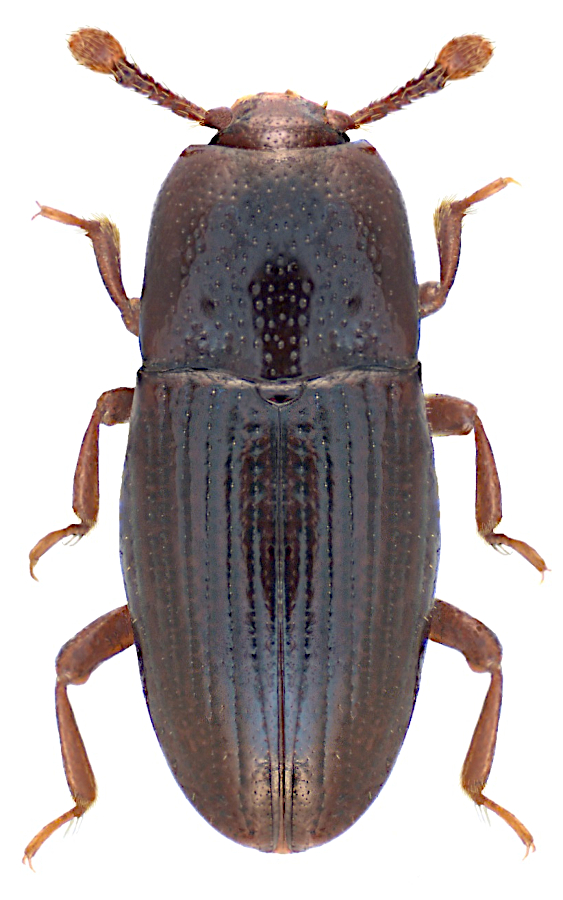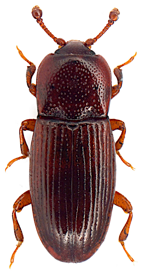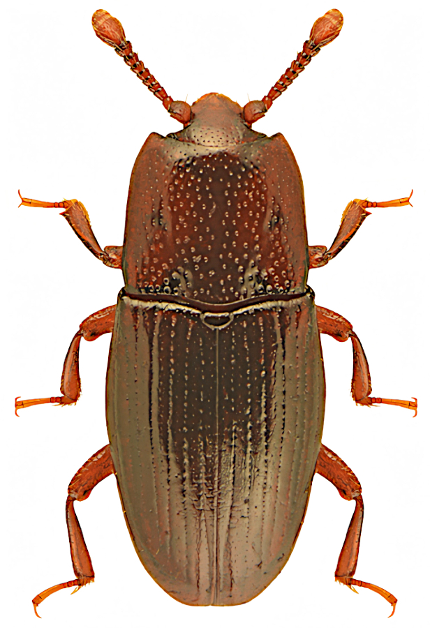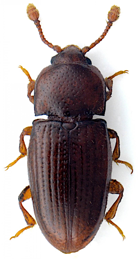 The family Cerylonidae comprises a small group of tiny, smooth and shiny beetles, usually hunting or living under bark or in decaying wood and litter. Individual species are mostly very small (typically 1–4 mm), often with an elongated to slightly flattened body and distinctly segmented antennae, ending in a club-shaped tip. Although they occur in all major zoogeographical regions of the world, they are most numerous in the tropics and subtropics. The biology of many species remains poorly understood; the literature generally states that they feed on fungi (hyphae, spores), slime moulds (myxomycetes) or small invertebrates – some authors also mention predation. Some species are myrmecophiles, living in ant nests. Genera and subfamilies within this group have been the subject of revisions in the past, which is also reflected in the varying definitions of the family across different faunistic surveys.