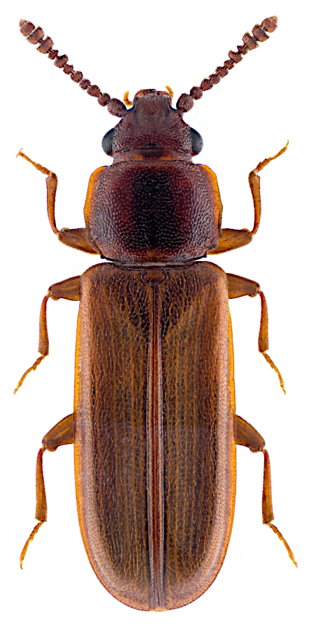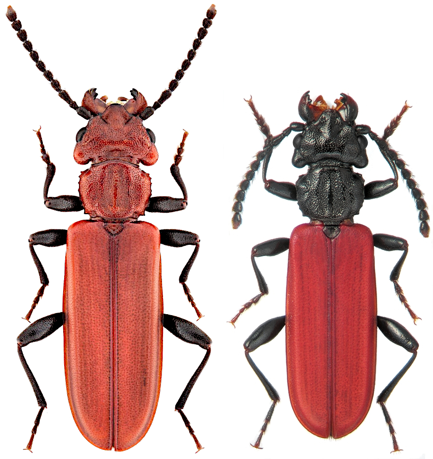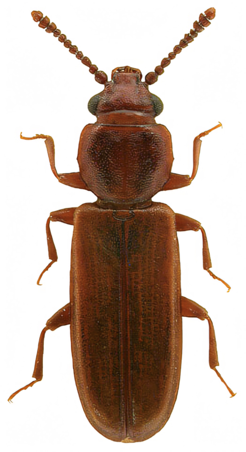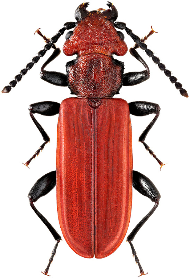 Cucujidae are conspicuously dorsoventrally flattened beetles, living mainly under the bark of trees. The body is conspicuously flattened and segmented, resembling a small bark scale. This morphological adaptation is no accident – their entire life cycle takes place in the narrow spaces between the bark and the wood of dying or recently dead trees. The family comprises approximately 60 species, divided into five genera, and is distributed worldwide with the exception of Africa, Antarctica and most oceanic islands. In forest ecosystems, the longhorn beetles play an important role as predators: they hunt the larvae and pupae of other bark-dwelling insects, including species that spread fungal diseases in trees, and are thus regarded as beneficial contributors to forest health. The most prominent representative is Cucujus cinnaberinus – a protected species that has become a symbol of saproxylic insect conservation across Europe and whose presence forms the basis for the designation of Natura 2000 sites.