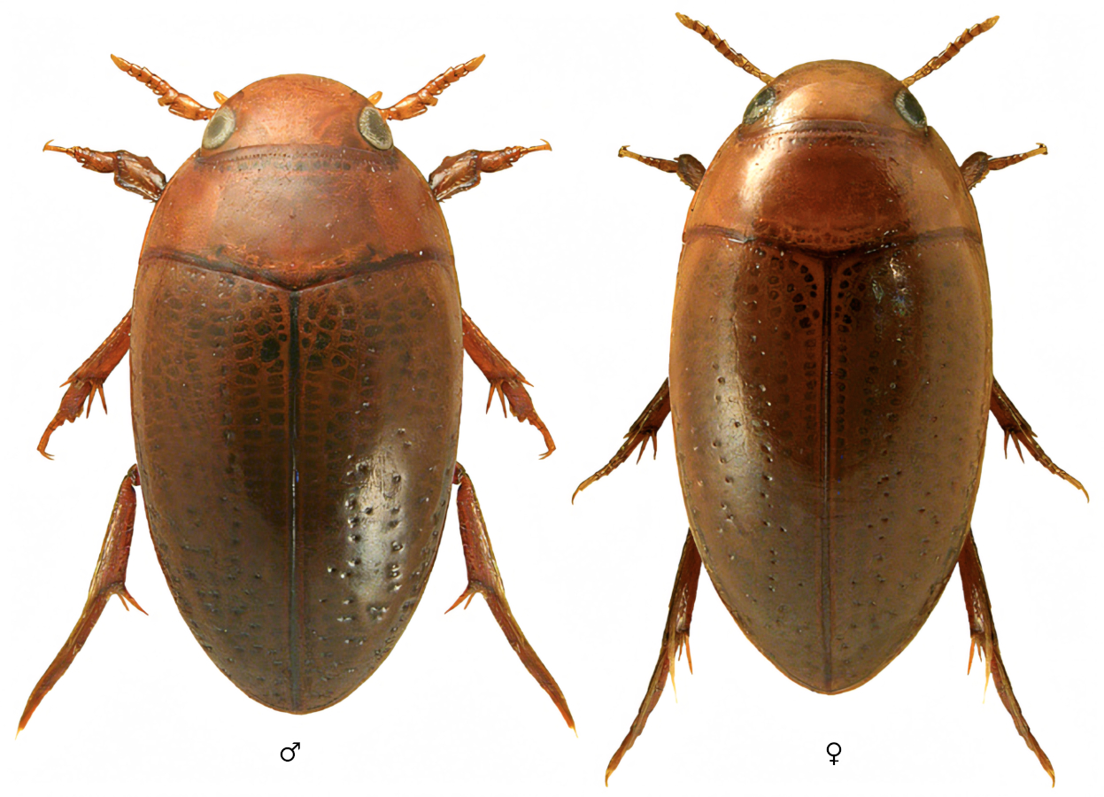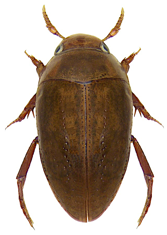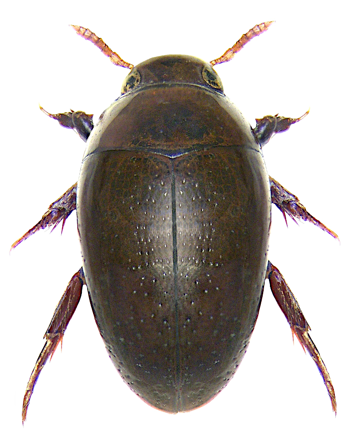 Noteridae are small aquatic beetles of the suborder Adephaga and are closely related to the Dytiscidae, with which they were formerly placed in the same family. Adults and larvae live in water, usually in shallow, heavily vegetated stagnant or slow-moving waters. Some species have the ability to 'burrow' in the substrate, i.e. in mud or amongst leaves on the bottom. They prey on small aquatic invertebrates such as mosquito larvae, ringworms or small crustaceans. However, they may also feed on detritus or algae.