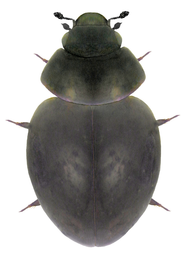 The family Sphaeriusidae belongs to the suborder Myxophaga in the order Coleoptera. They are extremely small, tiny aquatic or semi-terrestrial beetles, adapted to moist environments, such as often the edges of watercourses, mud, moss or substrate of wet or marshy places. The body is compact, convex, smooth and dark in colour. The head is visible and with relatively large eyes. The antennae are 11-parted with a 3-parted mallet. The front tibiae may be expanded and the front legs usually bear a tooth on the inner side. Adults and larvae feed on algal biofilms on rocks, roots or substrate in moist environments. The beetles and their larvae breathe atmospheric oxygen. Adults maintain a layer of air, called a plastron, under their bushes that allows them to remain underwater for longer periods of time. They are considered "living fossils" - a group with a long evolutionary history, a low diversification rate, and many species that may not yet have been discovered.