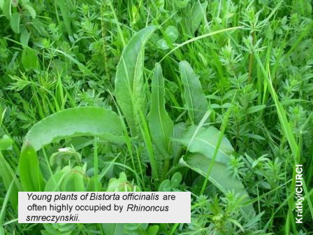 Wanat (2000) from synonymy with the very similar Rh. perpendicularis (Reich, 1797) [Fig. W39_6]. A monophagous species from Bistorta officinalis Delarbre (= Polygonum bistorta L.) [Fig. W39_7] . Living in seasonally flooded meadows and similar habitats [Fig. W 39_8]. New species for the Czech Republic.