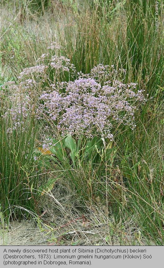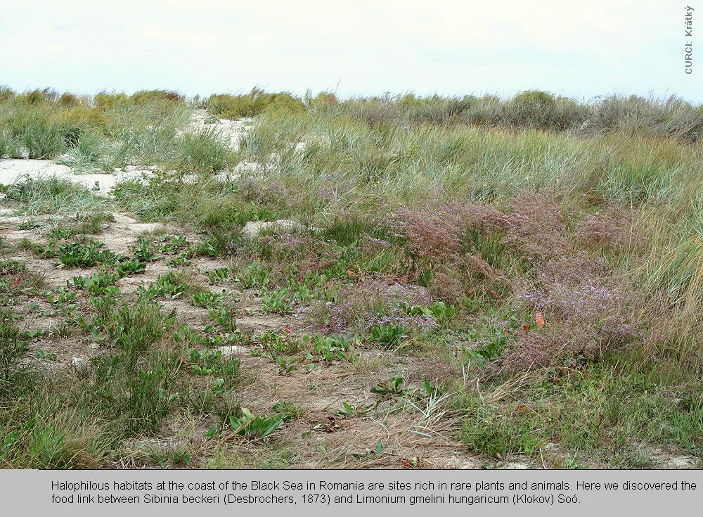 [Tab. W72.5], which is the largest halophytic reservation in Slovakia. Limonium gmelini hungaricum was discovered as host plant of Sibinia beckeri also in Dobrogea in eastern Romania in September 2010 (J. Krátký & P. Kresl, pers. observ.), where the beetles were beaten from host plants at a habitat similar to that in Kamenín